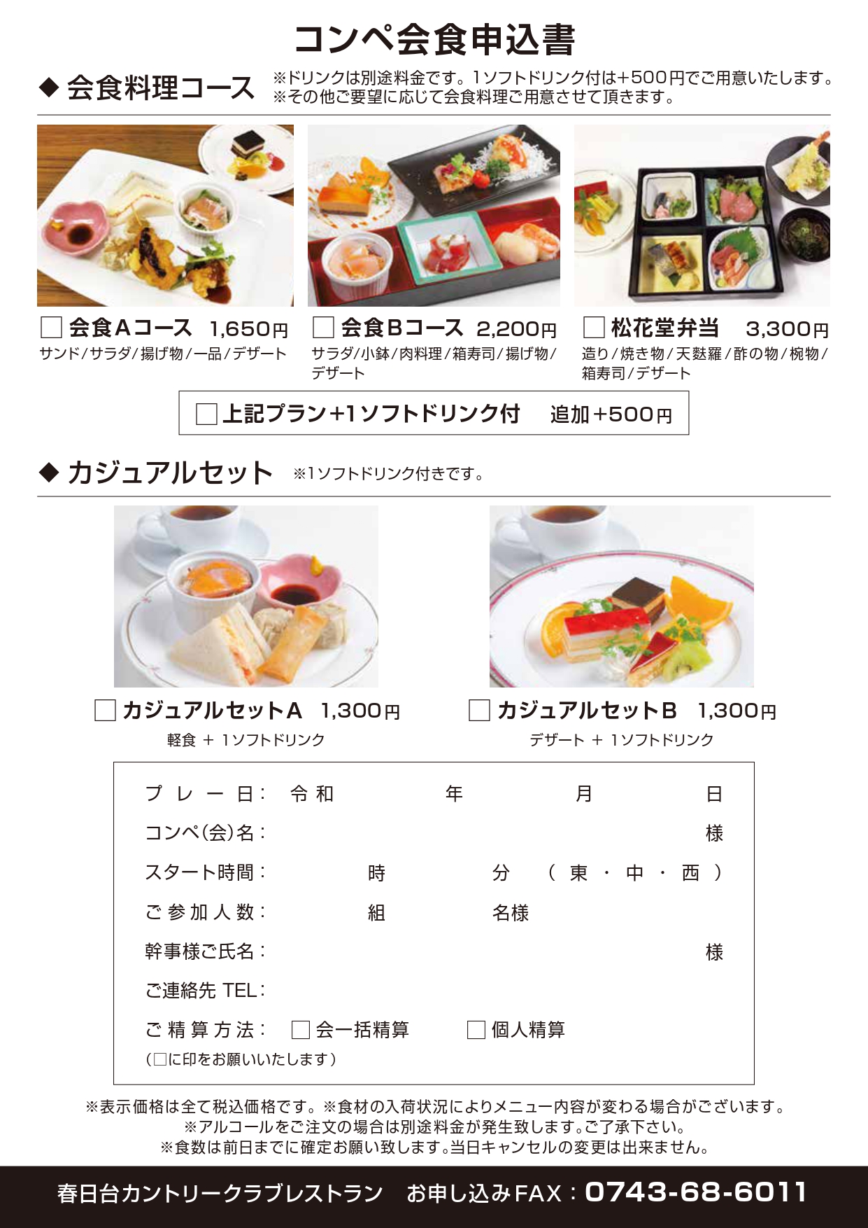 コンペのご会食メニュー&申込書は以下よりダウンロードしてご利用下さい。